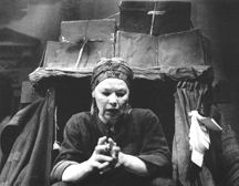 The play proved too politically inflammatory to be produced in Stockholm at a time when Hitler made no secret of his designs on Scandinavia, and the first performance of Mother Courage took place two years later in Zürich. Brecht did not see the production – by 1941 he was already planning his escape to Hollywood – though he read reviews that criticized Therese Giehse’s portrayal of Courage as excessively sentimental, and he rewrote portions of the text accordingly. The Brecht scholar Peter Thomson counters these charges, quoting an audience member who characterized Giehse’s Courage as dry-eyed and unheroic, precisely as Brecht had intended. She was, he says, “not beautiful and was built like a dumpling with the face of a basset hound. Not a sexually attractive woman. Thank God. She was ordinary, sly, sometimes sour.”