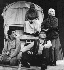 Nevertheless, the majority of productions of Mother Courage have attempted to imitate the Brecht/Weigel staging to various degrees, often with poor results. Brecht himself often noted that the stylistic traits of Epic Theatre could not be learned instantly. He and his actors would rehearse conventionally for several months before developing the layers of self-conscious performance that Weigel perfected. When the experimental director Joan Littlewood staged the British premiere of Mother Courage at the Devon Arts Festival in 1955, Littlewood herself performed the title role, and attempted to imitate Weigel’s style after only three weeks of rehearsal. Kenneth Tynan, one of the first English critics to recognize the importance of the play, wrote scathingly of her performance. “Littlewood plays it in a lifeless mumble, looking both over-parted and under-rehearsed,” he observed. “The result is a production in which discourtesy to a masterpiece borders on insult, as if Wagner were to be staged in a school gymnasium.”