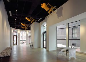 The new year brought a new theatre to the A.R.T. The building at the intersection of Arrow Street and Massachusetts Avenue comes to Cambridge courtesy of the Carr Foundation, led by local philanthropist Greg Carr. “He is a man with great vision, an interest in human rights and a love of theatre,” says Robert Orchard, Executive Director of the A.R.T. In addition to having founded the Market Theater in Cambridge, which closed a few years ago, Carr also serves on the A.R.T.’s Advisory Board. Plans for his new building were already underway when he invited A.R.T. to participate. “We quickly worked out an arrangement,” says Orchard, “whereby we were able to create our own space in the building, access a loan through a non–profit bond, and purchase the space from the Carr Foundation. It’s a condo, essentially. Now we have to raise the funds to pay back the loan. We were able to fit out the space, less the base building cost of $5.7 million dollars we still have to raise. A 300- seat theatre designed to our specifications in a new building in Harvard Square for under $8 million dollars was an opportunity we couldn’t pass up.” The theatre–condo couldn’t have come at a better time. The A.R.T. always needed a second space because for six weeks in the middle of each semester the Harvard undergraduates take over the Loeb Drama Center mainstage. Second, a smaller, more intimate space allows the company to take risks on new plays and younger artists. Third, good rehearsal space in Harvard Square is hard to find. Finally, the Institute for Advanced Theatre Training has never had a space of its own. “Ironically, the Institute, a partnership with the Moscow Art Theatre School, had more sustainable public performance opportunities in Russia than in Cambridge,” says Orchard. The A.R.T. had begun scouting for a location, hoping to renovate an old space, when Carr offered them the opportunity to create a theatre from scratch in his new building. “A new building in Harvard Square,” says Jonathan Miller, A.R.T.’s General Manager, “is an unusual occurrence.” A.R.T.’s portion of the building includes the lobby and theatre on the ground floor and a modest dressing room and office in the second. The third and fourth floors are occupied by the Carr Foundation and the Noble prize-winning human rights organization Physicians for Human Rights, which facilitated dialogues for Children of Heraklesin the 2002–2003 season and, more recently, two of the Monday panel discussions in the South African Festival. “I expect we will continue to do projects together over time, and I imagine the Carr Foundation will come to us from time to time with a play and ask if we would join in partnership to produce it,” says Orchard. The A.R.T. has also developed a partnership with World Music, a local organization for international music and dance. Already plans are in the works for collaborating with the organization on original work beginning as early as next season. In addition to music and dance, the theatre will also spotlight contemporary art. “The lobby can function as more than a place to get your tickets,” says Burt Sun, a visual artist and consultant for A.R.T. He has transformed the entryways of the Loeb and Zero Arrow into small galleries, showcasing local and international artists. “We want to use these spaces to give local artists and students exposure they wouldn’t get otherwise. In Zero Arrow or the Loeb anywhere from 200–500 people blow through here in a night, and it doesn’t matter if they spend five minutes or thirty seconds in the lobby. Art can be seen. Zero Arrow can become a real destination.” Sun was also instrumental in consulting on the look of the new theatre. “We stuck with simplicity, something raw, industrial, contemporary. So, instead of laying a new floor we actually kept the concrete floor and treated it with textures and color and polish.” The lobby stretches long and narrow, with expansive windows on one side, leading to the doors of the theatre, which are framed in mirrors. “Inside reflects outside,” says Sun. “It extends the illusion of the lobby, making it bigger. Once you pass that point you are in the land of make–believe, the end of the rabbit hole.” The rabbit hole ends in a black box, a room painted black. The primary advantage of a black box is flexibility; audience and performance areas can change for every show, and the intimacy of the space creates a close connection between the two. The first show in the space, Pieter–Dirk Uys’ Foreign Aids, capitalized on the proximity of the audience through direct audience address; Pieter would often reference specific individuals throughout the house. However, Foreign Aidswas a touring show, designed to be performed almost anywhere. Artistic Director Robert Woodruff will direct the first A.R.T.-produced show in Zero Arrow, Edward Bond’s Olly’s Prison. Woodruff and designer David Zinn will also use the intimacy of the space to their advantage, but in a different way. The design for the show condenses the already compact Zero Arrow by surrounding both the audience and the stage with high walls, creating a room within a room. “We wanted to create a singular world which included the play and the audience,” says Woodruff. Olly’s Prison examines the forces of repression and the struggle for freedom by following one man’s incarceration and search for redemption. “Bond is giving voice to a part of society that usually doesn’t have a voice on our stages,” says Woodruff, “an eloquent and poetically powerful voice.” As David Davis writes in Edward Bond and the Dramatic Child, to be published this spring, Bond “is the most gentle of people who hates violence. But because the world is dominated by violence and injustice he insists it must be dealt with in his plays.” Both Woodruff and Zinn strive to capture Bond’s intentions through design by resisting the temptat