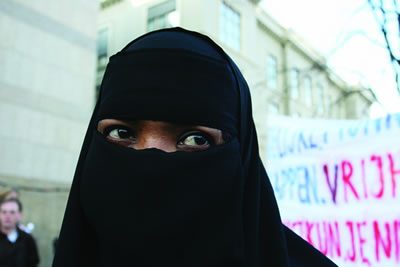 In 2001 the writer and actress Adelheid Roosen performed in the Dutch incarnation of Eve Ensler’s The Vagina Monologues. Although she enjoyed the performance for what it was, delivering what she describes as a psychologically “enabling” experience for mostly privileged audiences, she also was struck by its fundamental orientation to Western women, encouraging openness in questions of anatomy and sexuality among women already living in an open society. Roosen grasped the powerful cultural impact that Ensler’s piece had on middle-class audiences and was struck by the theatrical model it offered — but she also saw additional possibilities. Despite its title, The Veiled Monologues is not intended as a corollary or a corrective to The Vagina Monologues. It is an entirely autonomous work that carefully lays out its separateness. Indeed, as if to get it out of the way at the outset, the first speaker directly addresses the relationship of this performance to that of Ensler’s drama: “Two and a half years ago Eve Ensler’s play The Vagina Monologues toured the Netherlands,” reads the script (composed in 2003). “These monologues led to the idea of interviewing women with an Islamic background. The interviews were both tentative and passionate. A journey as a tourist in your own land.”