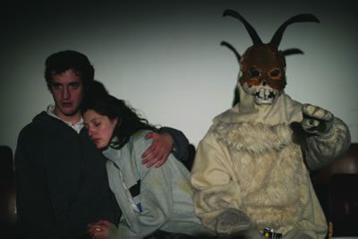 The timing of the original release helps explain Donnie Darko’s trajectory from a nearly forgotten independent film to a home video and art house smash success. The film opened six weeks after September 11th, and an early scene showing a jet engine crashing down on a suburban home most likely didn’t sit well with many U.S. audiences at the time. Closing after a very limited run, the movie seemed destined to fade into obscurity. For twenty-six year old director and screenwriter Richard Kelly, who had made his debut with Donnie Darko, the project seemed like an inauspicious beginning to his professional career. But soon everything started to turn around. Walking through the East Village just months after the film’s release, Kelly spotted a poster promoting his film. A small, independent movie house, the Two Boots Pioneer Theatre, had been screening the film every Friday and Saturday night. Other houses around the country, including the Coolidge Corner Theatre in Brookline, soon began similar screenings.