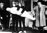 An upside-down corpse stuffed with Orton’s dead mother’s teeth captures the playwright’s sense of anarchy. With Loot, Orton turned middle-class platitudes on their heads. As Robert Brustein points out in The Theatre of Revolt, attacking the bourgeoisie drove many modern playwrights. The method of Orton’s assault, however, was revolutionary. Orton anchored black comedy in banal realism. “Ortonesque,” a term that came into vogue after the success of Loot, describes a combination of the absurd and the familiar. The false teeth, in all his plays, are real. This paradox gives his farce a bite. “There’s supposed to be a healthy shock,” Orton said, “at those moments in Loot when an audience suddenly stops laughing. So if Loot is played as no more than farcical, it won’t work” (Ears, 226).