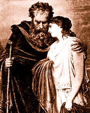 Antigone belongs to the last surviving generation of a family that suffered because they did not follow the instructions of the gods. Her grandfather Laius was warned not to beget a child but did so nonetheless. The child, as was the ancient custom, was taken to a remote place to die, either from starvation or as a victim of predators. But instead he was given to a shepherd to be raised in another city. When the child, whose name was Oedipus, learned that he might have been adopted, he went to the oracle at Delphi to learn who his true parents were and was told that he would kill his father and marry his mother. He thought he could avoid fulfilling the oracle by staying away from Corinth. But on his way north he killed an older man, without knowing the man was his father, and he later married the widow of the king of Thebes, Jocasta, unaware that she was his mother. They had two daughters, Antigone and Ismene, and two sons, Eteocles and Polynices.
