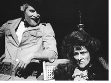 Christopher Durang and Charles Levin in the 1974 Yale Repertory Theatre production of The Idiots Karamazov.Similarly, Innaurato understands their conspiracy as a compliment. Innaurato, who speaks fluent Russian, even attributes an element of parody to Dostoevsky’s original. “I think that Dostoevsky, like any great artist, was an anarchist. There’s an element of parody in the novel itself. Specially in the Grand Inquisitor scene. Constance Garnett, the translator, missed the density of Dostoevsky’s grotesque humor. Pushkin was not altogether straightforward either. I can’t look at Eugene Onegin except as parody.”