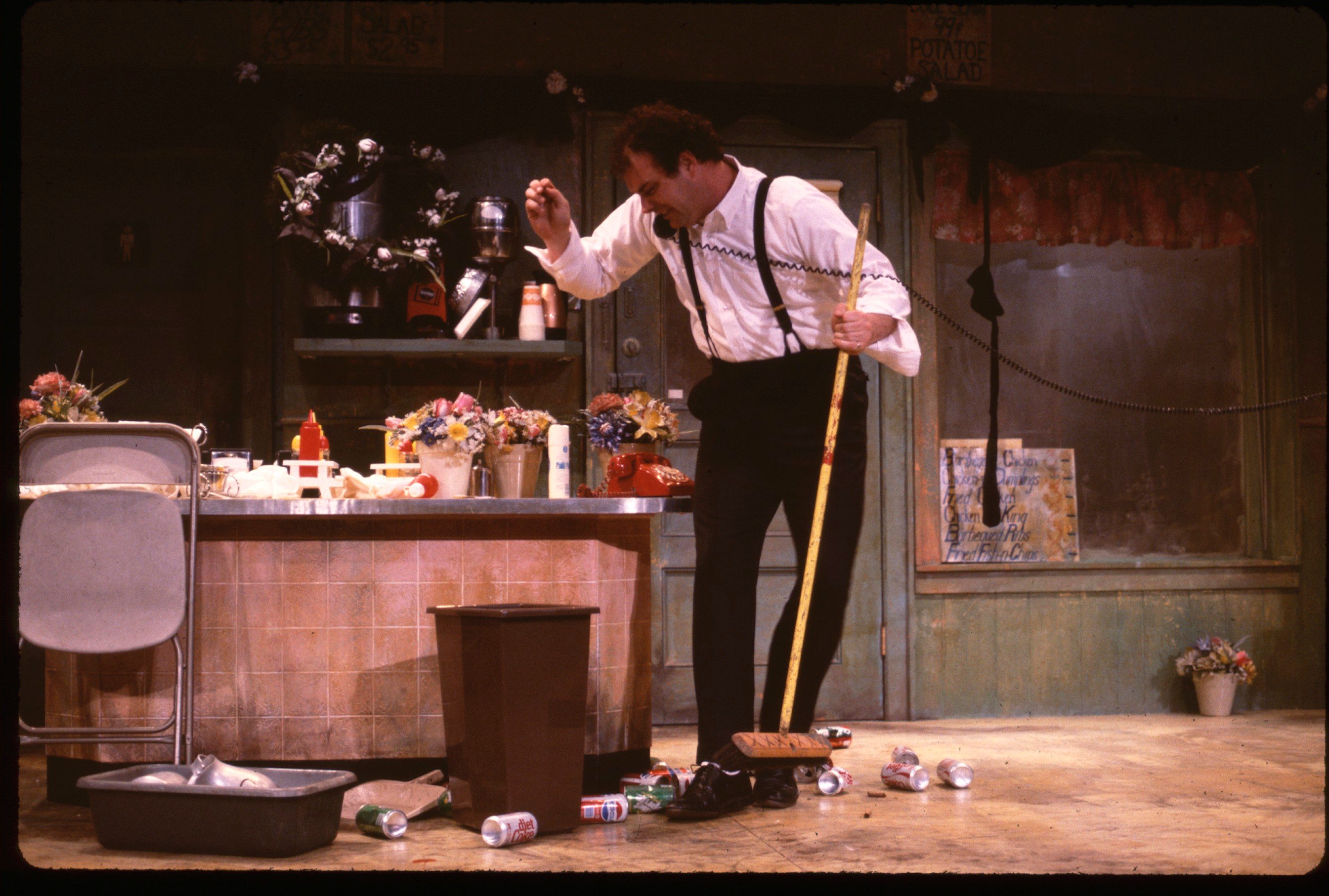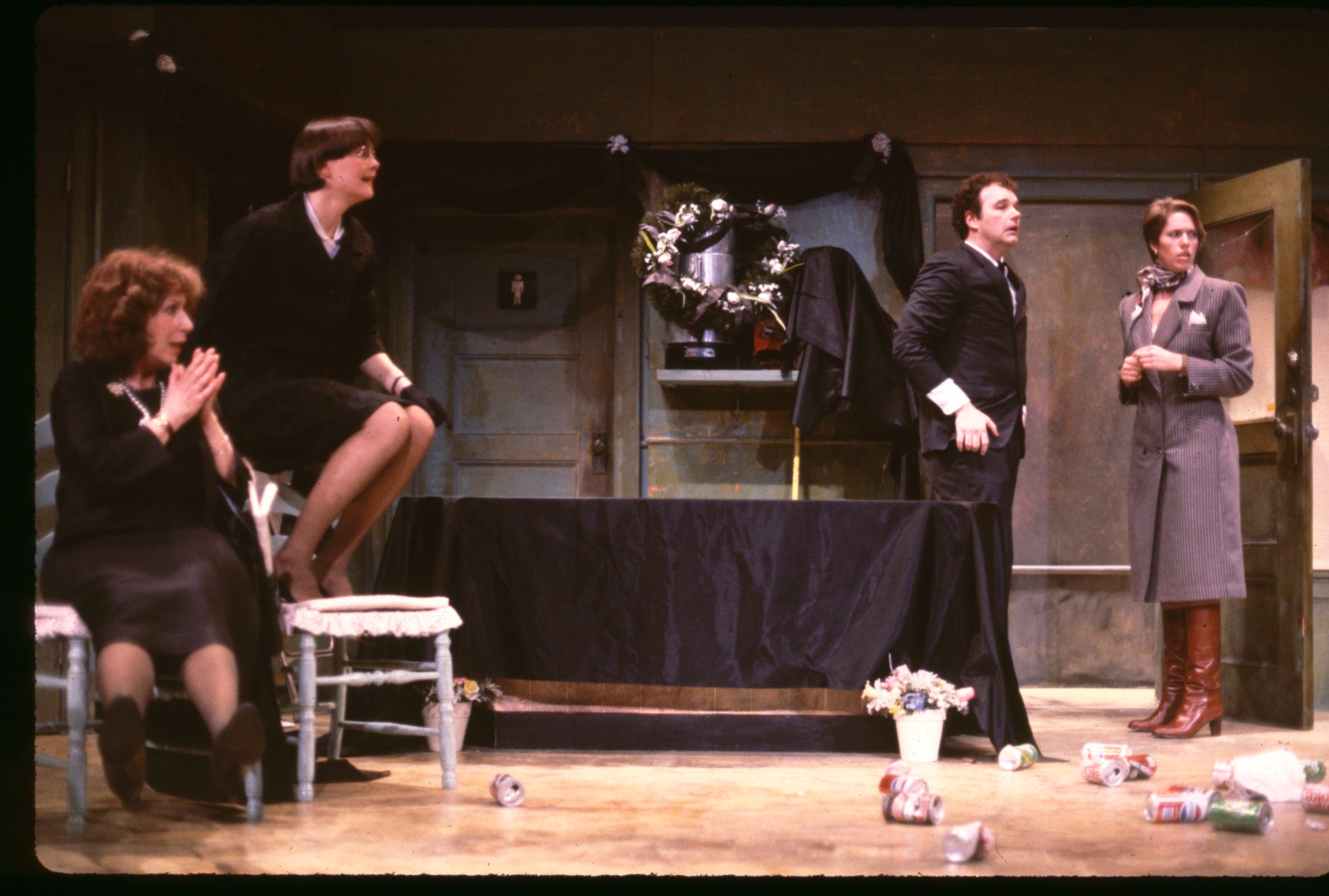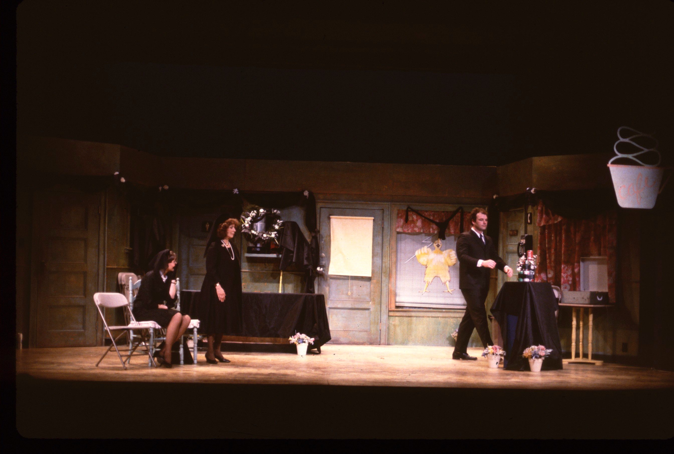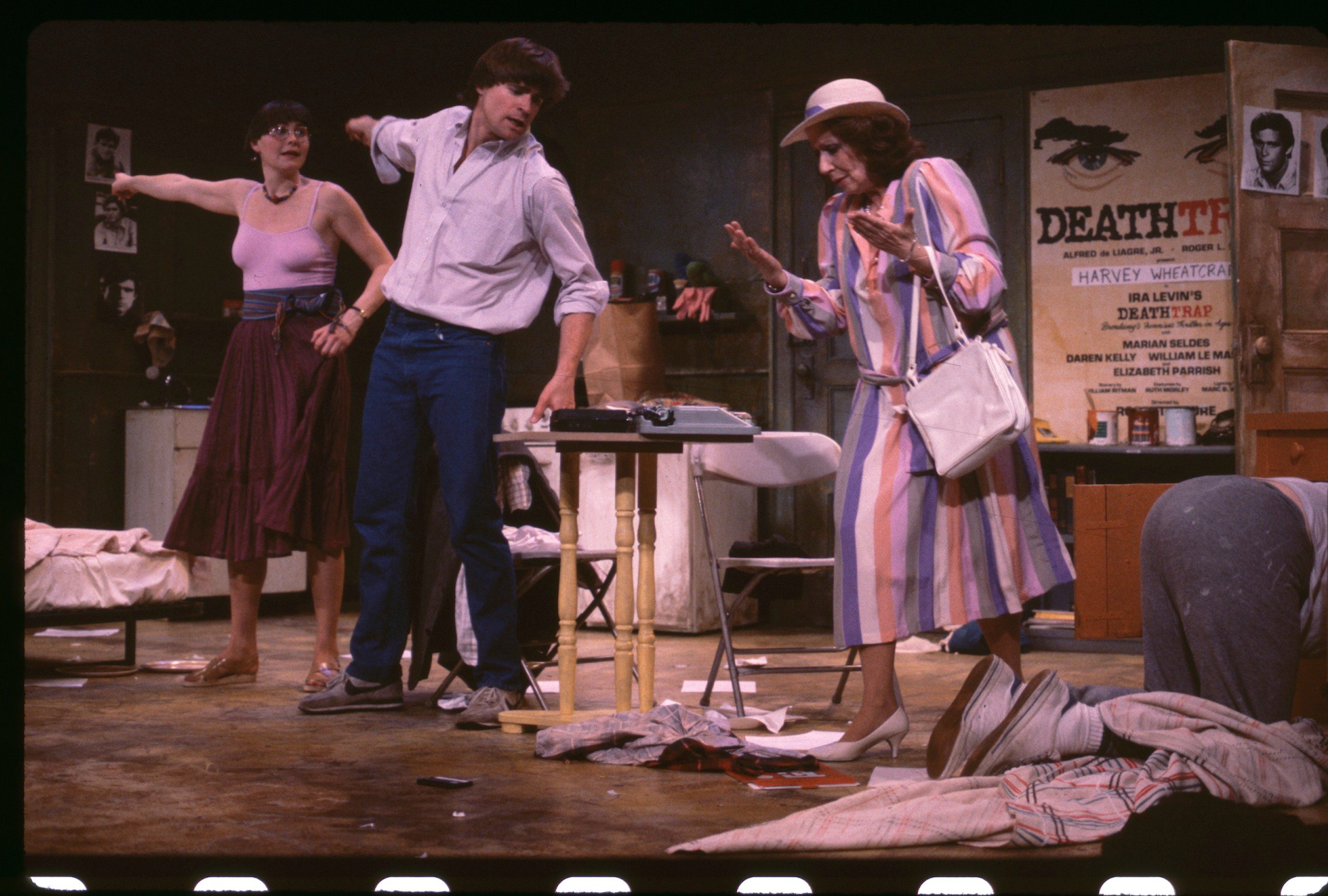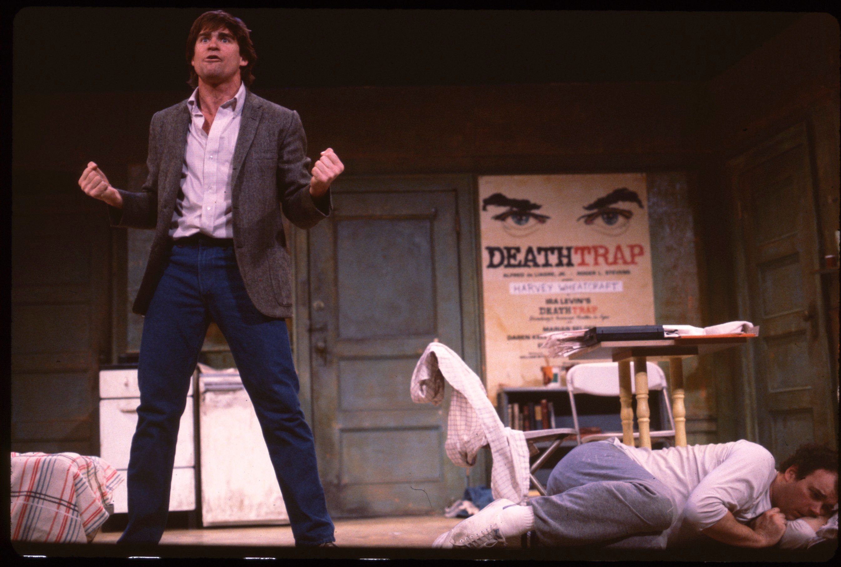 Sam, a struggling novelist who has not been able to get past page one, convinces Sara, his loyal vegetarian girlfriend to allow him to orchestrate the funeral services for her recently deceased stepfather. He transforms a vacated chicken-and-ribs joint into a funeral hall and builds a memorial urn out of soda cans and cigar ashes, hoping to impress Sara’s wealthy mother. All is well until Harvey, a struggling actor whose favorite play is Deathtrap, bursts onto the scene mistaking the funeral for an audition hall. Although Harvey destroys the funeral, he agrees to become Sam’s roommate. When Sam and Sara learn that Harvey has sold some plot ideas to CBS, they plot to murder him in the manner of his favorite play.