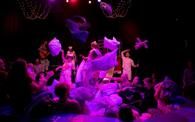 Please note that H.M.S. Pinafore has no fixed seats. You can physically move around the space with the actors, where there are surfaces on the set you can rest, but you may be asked to move during the performance.