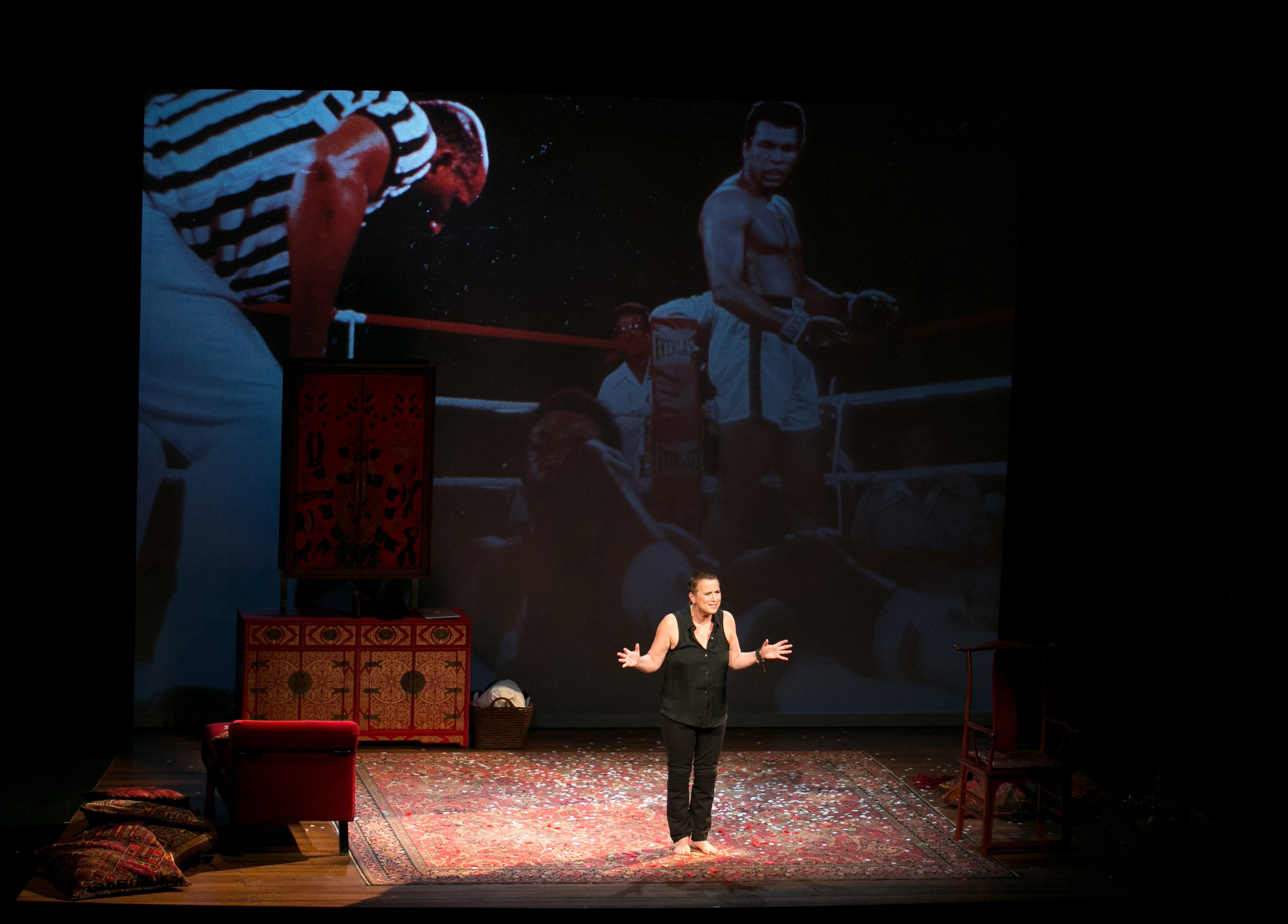 This emotional and intimate one-woman show deals with severe illness, abuse and trauma. The play contains graphic descriptions of both psychic and physiological symptoms of illness, sexual abuse, and violence.