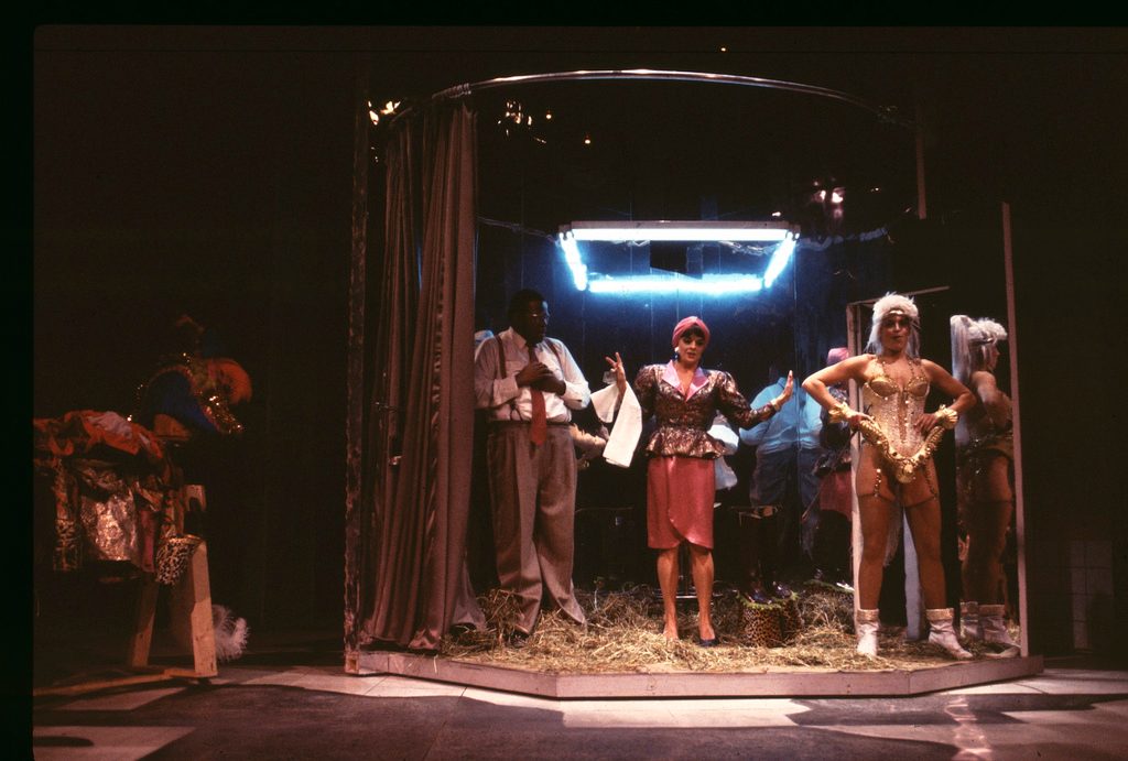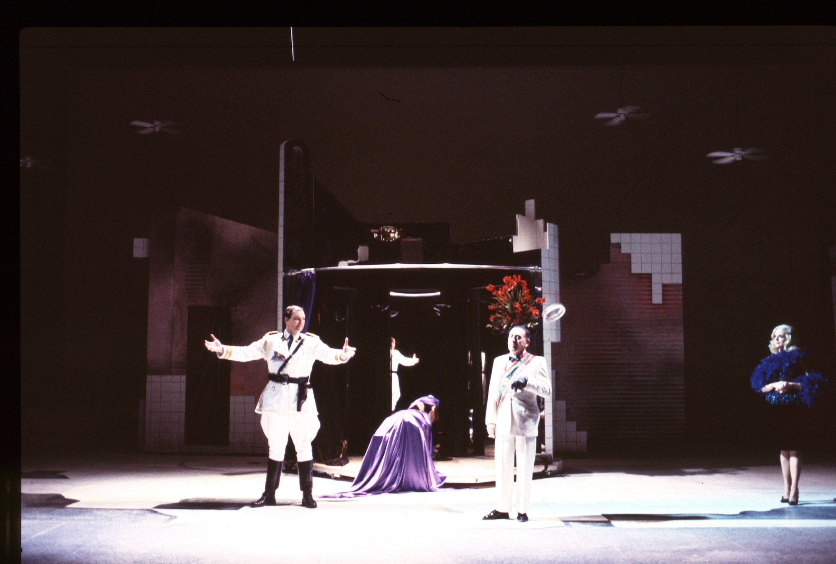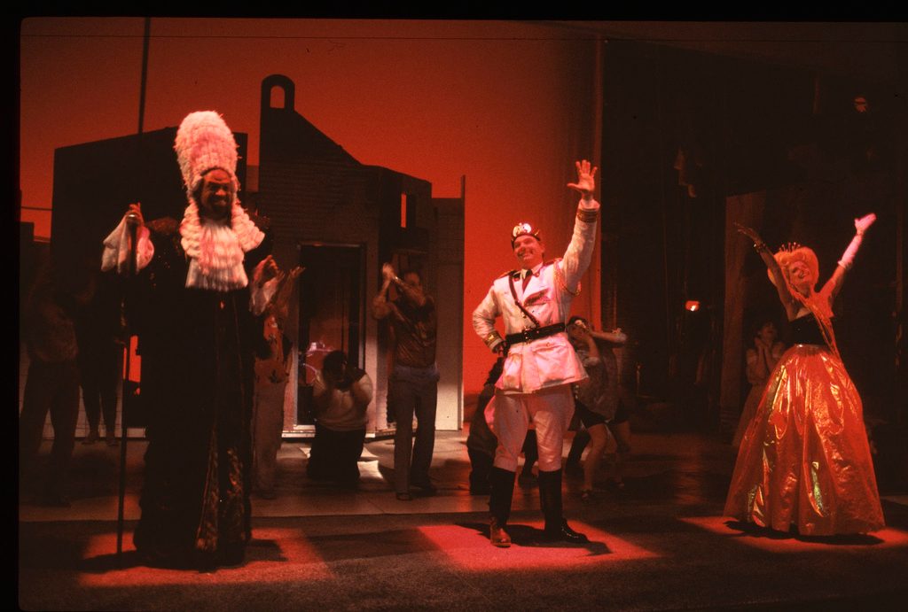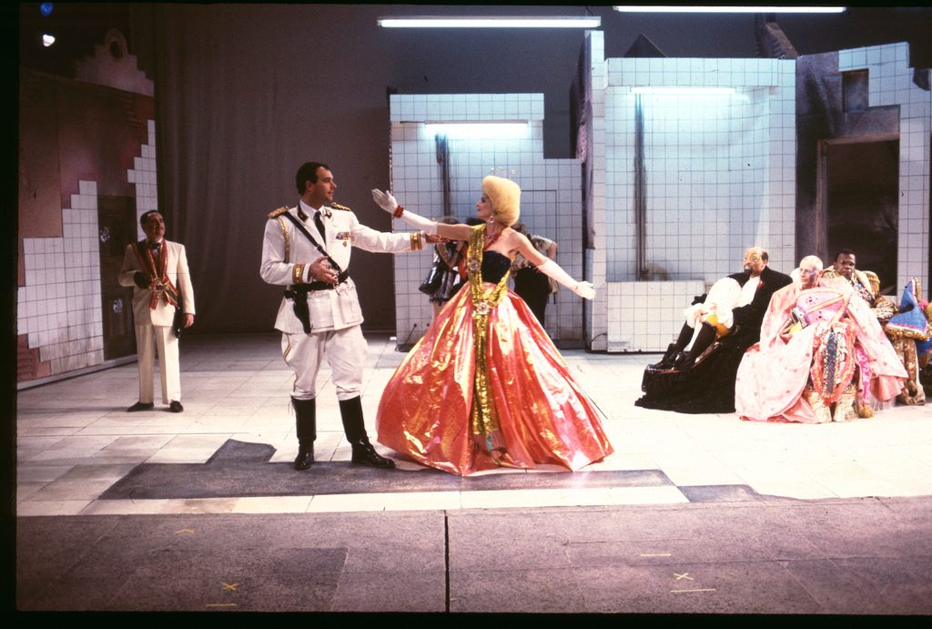 Irma is the proprietress of a brothel called the “House of Illusions.” As a revolution rages outside, her clients use the prostitutes to fulfill their sadomasochistic fantasies of men who rule the military, the courts, and the church. When the leaders fall, Irma and her clients take their palce, turning a bizarre fantasy into a grotesque reality.
