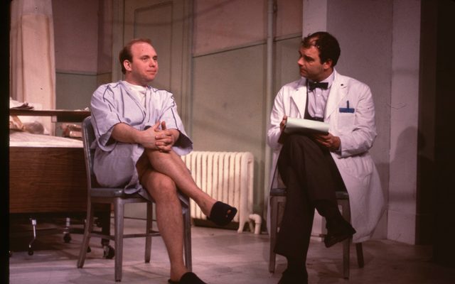 Act I is set in a semi-private hostpital room. Mr. Budge tries to get his new rommate, Mr. Wyatt to talk to him. A series of characters posing as medical staff are gradually revealed to be patients from the neighboring Arlo Klein Psychiatric Wing, known as “The Day Room.” Act II is set in a motel room where the same actors now play different characters. They watch daytime TV, throw food, and search for the elisive Arlo Klein Theatre Company that no one else has seen. Mr. Wyatt becomes a man in a straightjacket who spouts fragments of TV babble as the other characters signal him by remote control. At the end of the play, the scene is changed back to a hospital, and it appears the action will begin again.