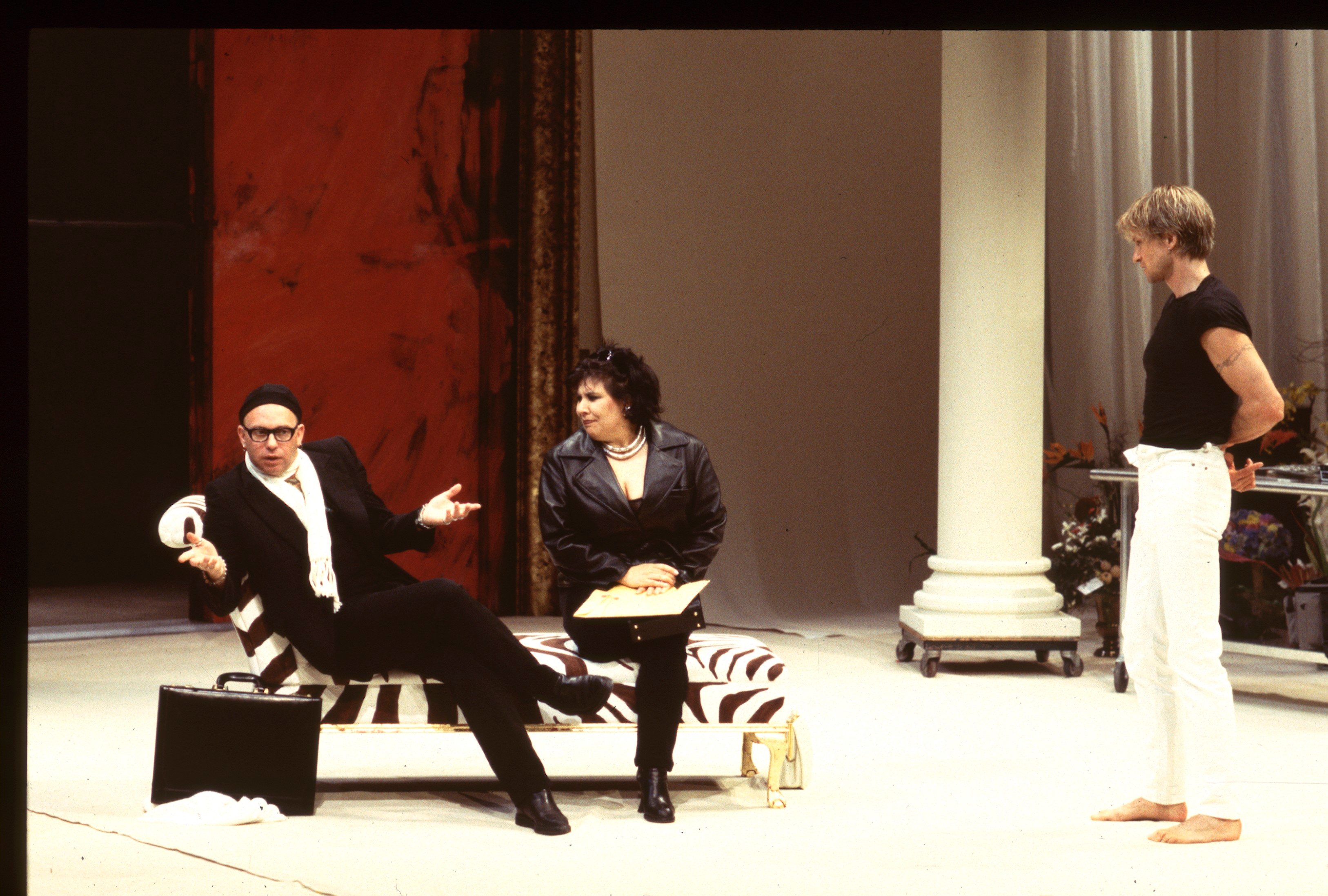 Take a photographer modeled on Robert Mapplethorpe (only funnier), stir in his lesbian assistant who rages at people who use bad French, mix with an uptight senator campaigning for President, his socially prominent wife, his finishing-school daughter, and his gorgeously vacant mistress (a former Playboy, Miss August), and you get The Naked Eye—a farce for the ’90s about the collision of art, sex, society and politics. Part comedy of manners, part over-the-top cartoon, The Naked Eye is the latest work by one of this country’s most admired young playwrights, best known for his hugely successful comedies I Hate Hamlet and Jeffrey (recently released as a major motion picture).