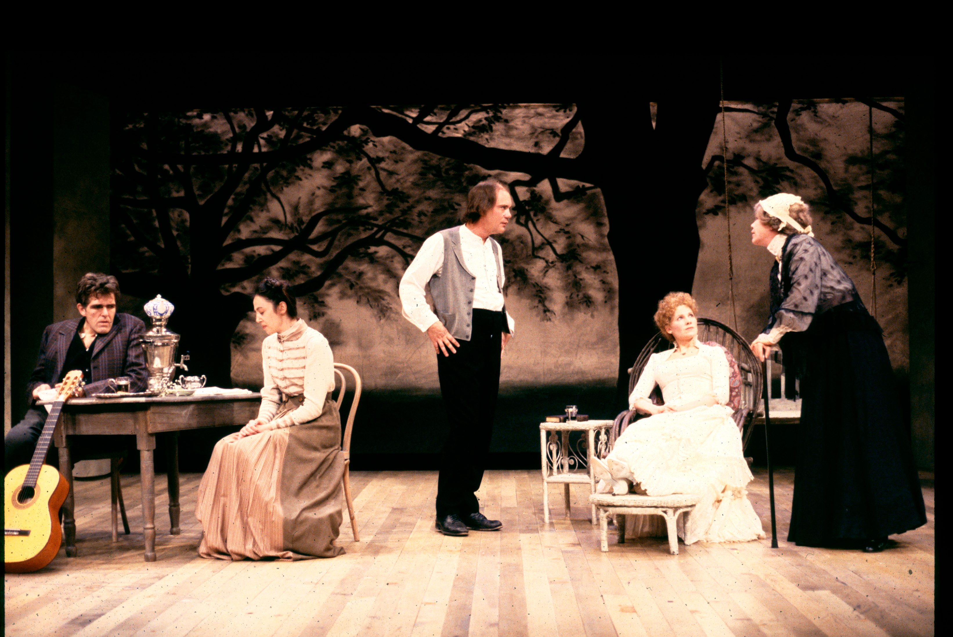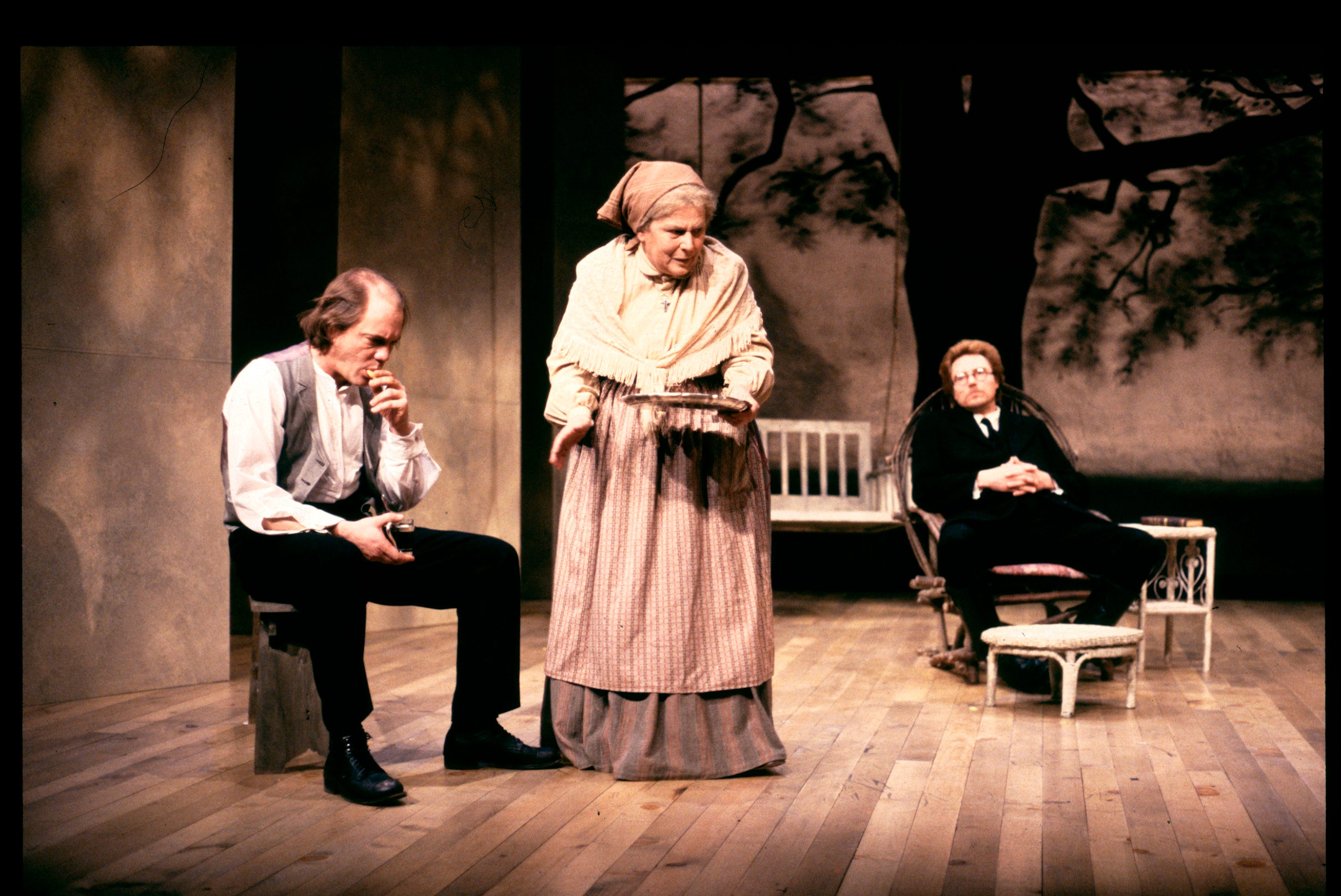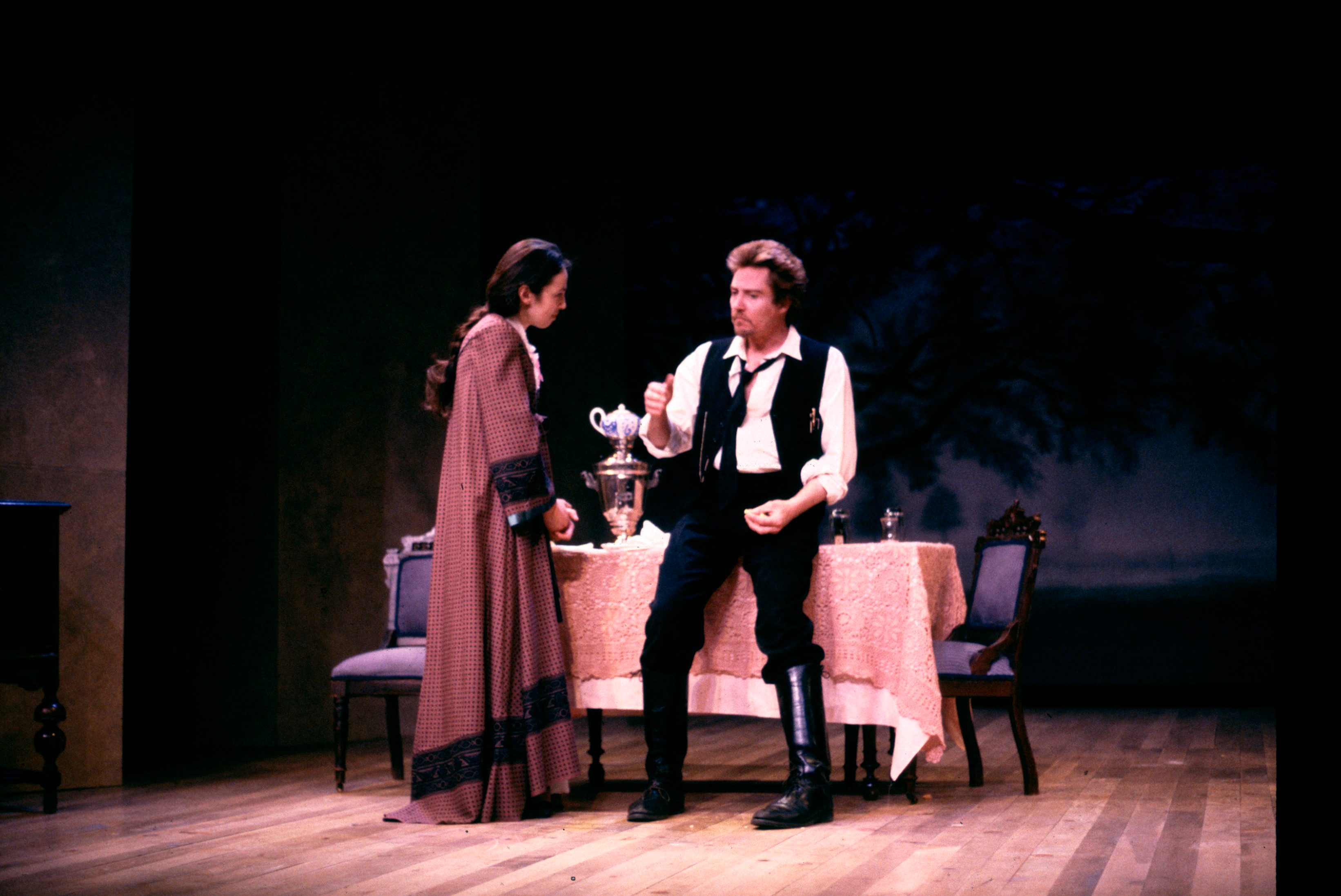 Serebryakov, a retired professor, returns to his country estate with his bewitching second wife, Yelena. His daughter, Sonya, and his brother, Vanya, have selflessly dedicated themselves to him. However, Vanya now scorns the professor adn covets his wife. Astrov, the family doctor, becomes the object of both Sonya’s and Yelena’s affection. While the professor announces his intention to sell the estate, Vanya realizes the extent of his wasted life and attempts to shoot the professor and himself. After Yelena and Serebryakov leave the estate, Sonya encourages her uncle to find faith and solace in their work.