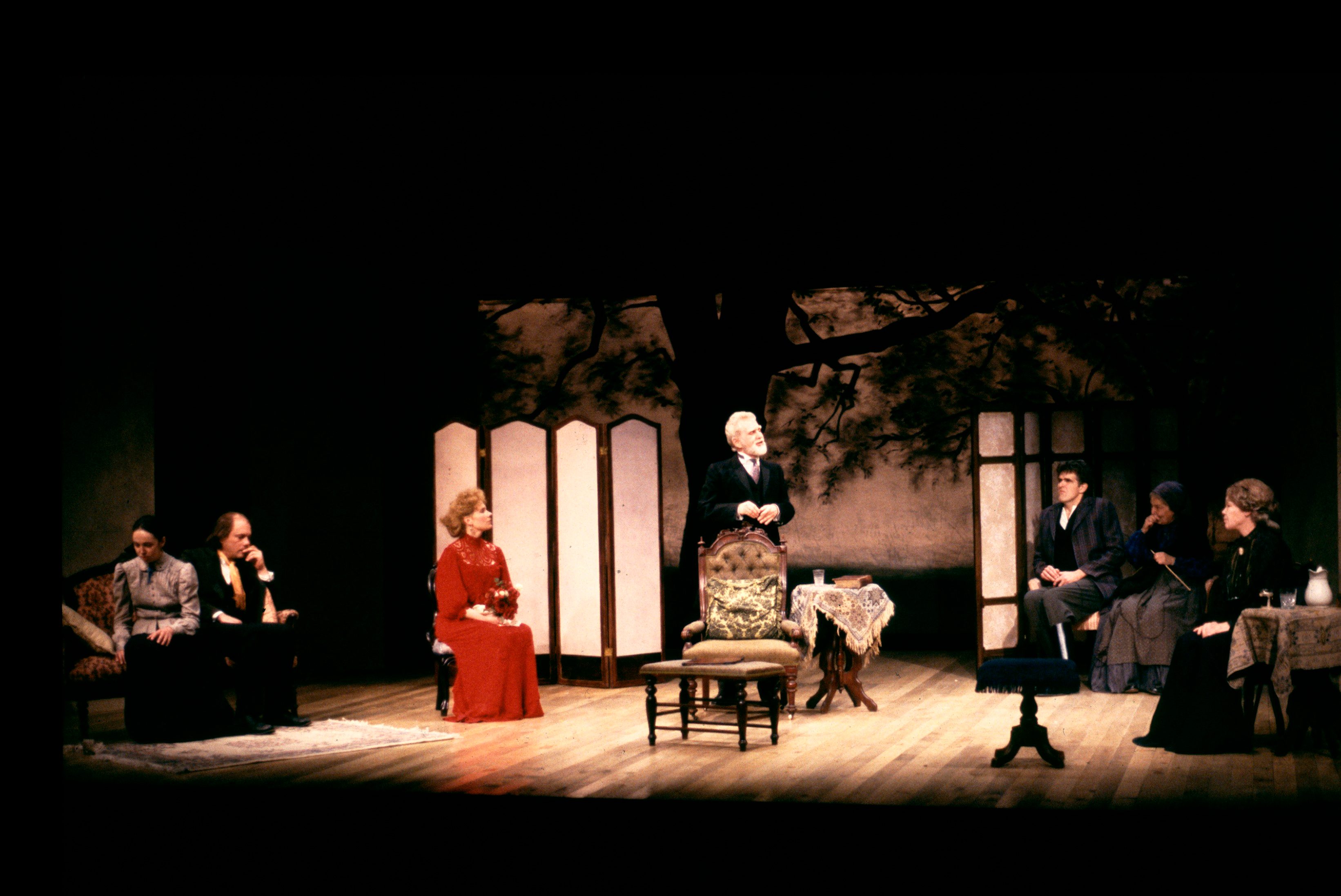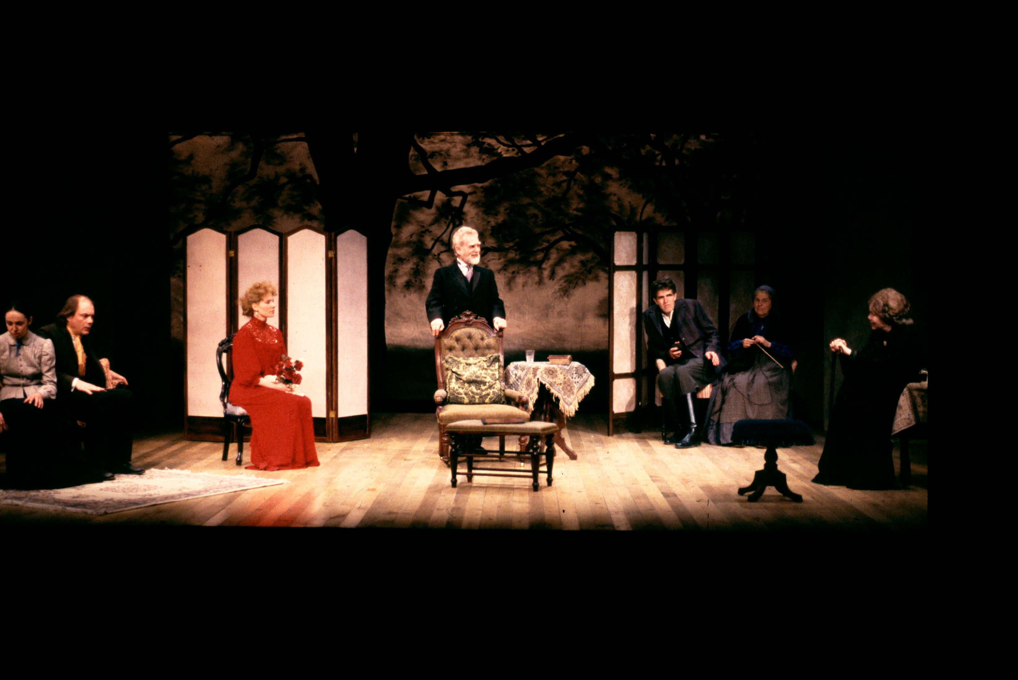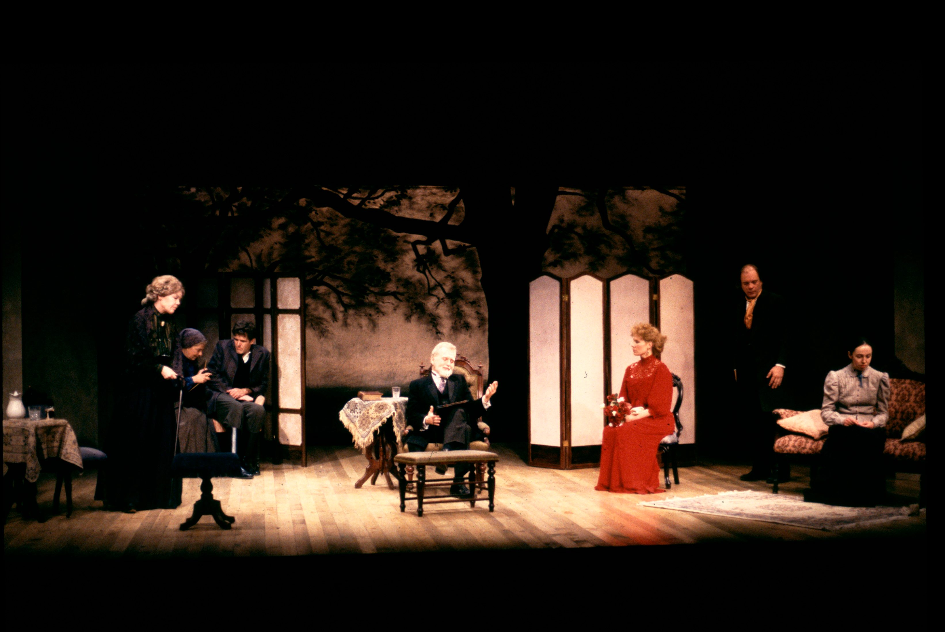 Serebryakov, a retired professor, returns to his country estate with his bewitching second wife, Yelena. His daughter, Sonya, and his brother, Vanya, have selflessly dedicated themselves to him. However, Vanya now scorns the professor adn covets his wife. Astrov, the family doctor, becomes the object of both Sonya’s and Yelena’s affection. While the professor announces his intention to sell the estate, Vanya realizes the extent of his wasted life and attempts to shoot the professor and himself. After Yelena and Serebryakov leave the estate, Sonya encourages her uncle to find faith and solace in their work.